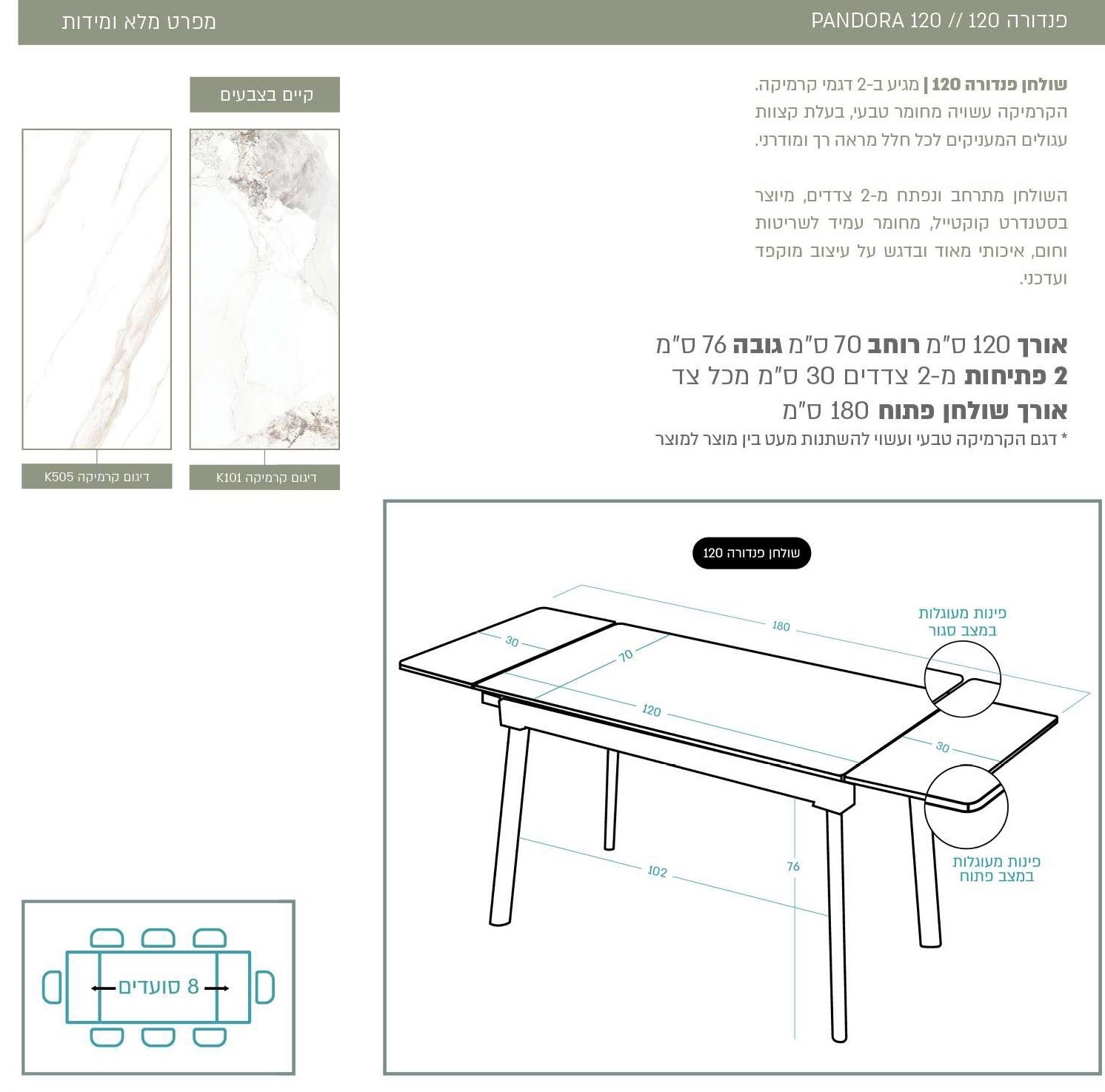 / שולחן פנדורה 120+30+30