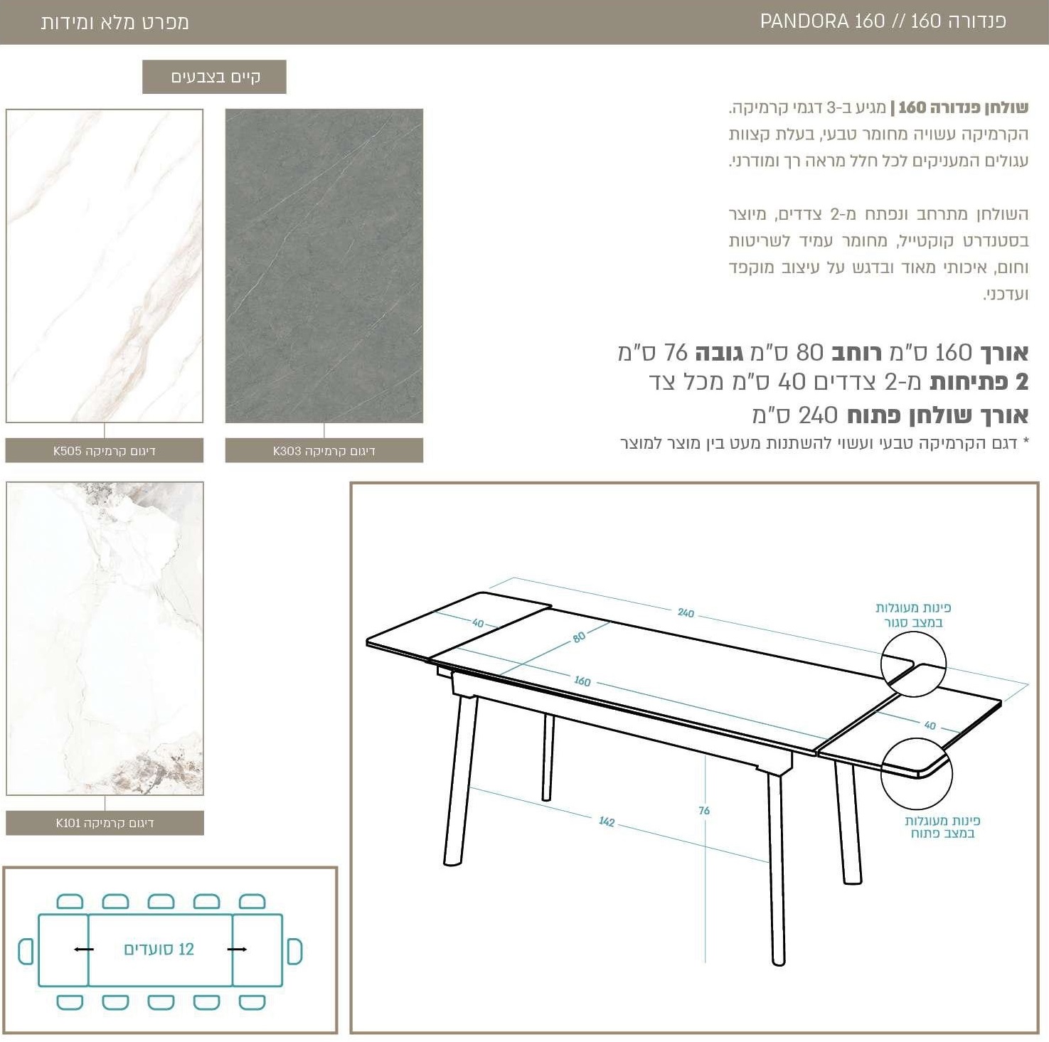 / שולחן פנדורה 160+40+40